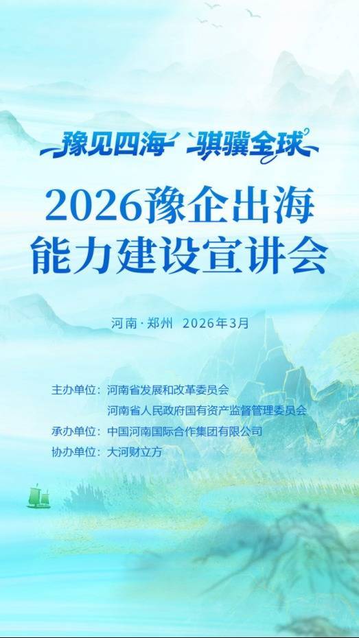 【大河财立方 记者 闫文瑞】为进一步助推河南企业高水平“走出去”,深度融入全球产业链供应链,“豫见四海 骐骥全球”2026豫企出海能力建设宣讲会将于3月31日在郑州龙子湖举行。